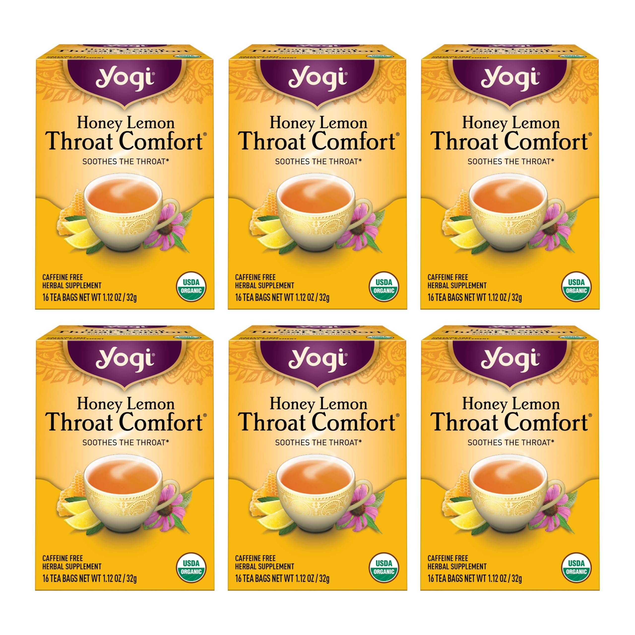 Yogi Tea - Honey Lemon Throat Comfort (6 Pack) - Soothes the Throat - 96 Tea Bags